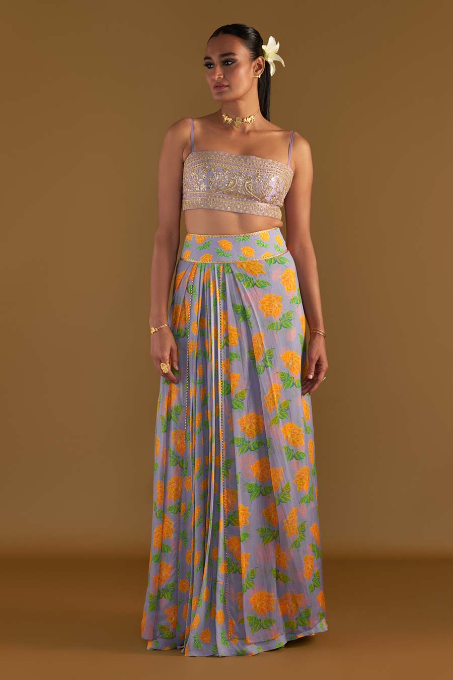 • All Over Digital Printed Double Layer Skirt Edged With Kinari