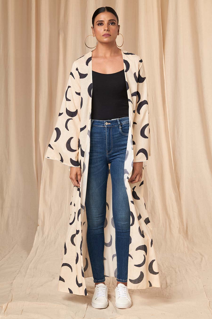 Black & Ivory Mooncrest Poncho & Drape Skirt Set