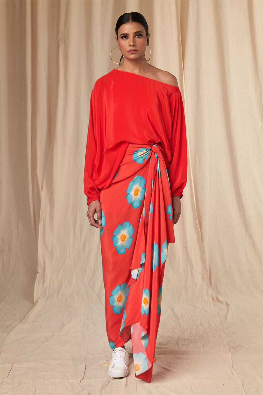 Red Poncho & Crazy Daizy Drape Skirt Set