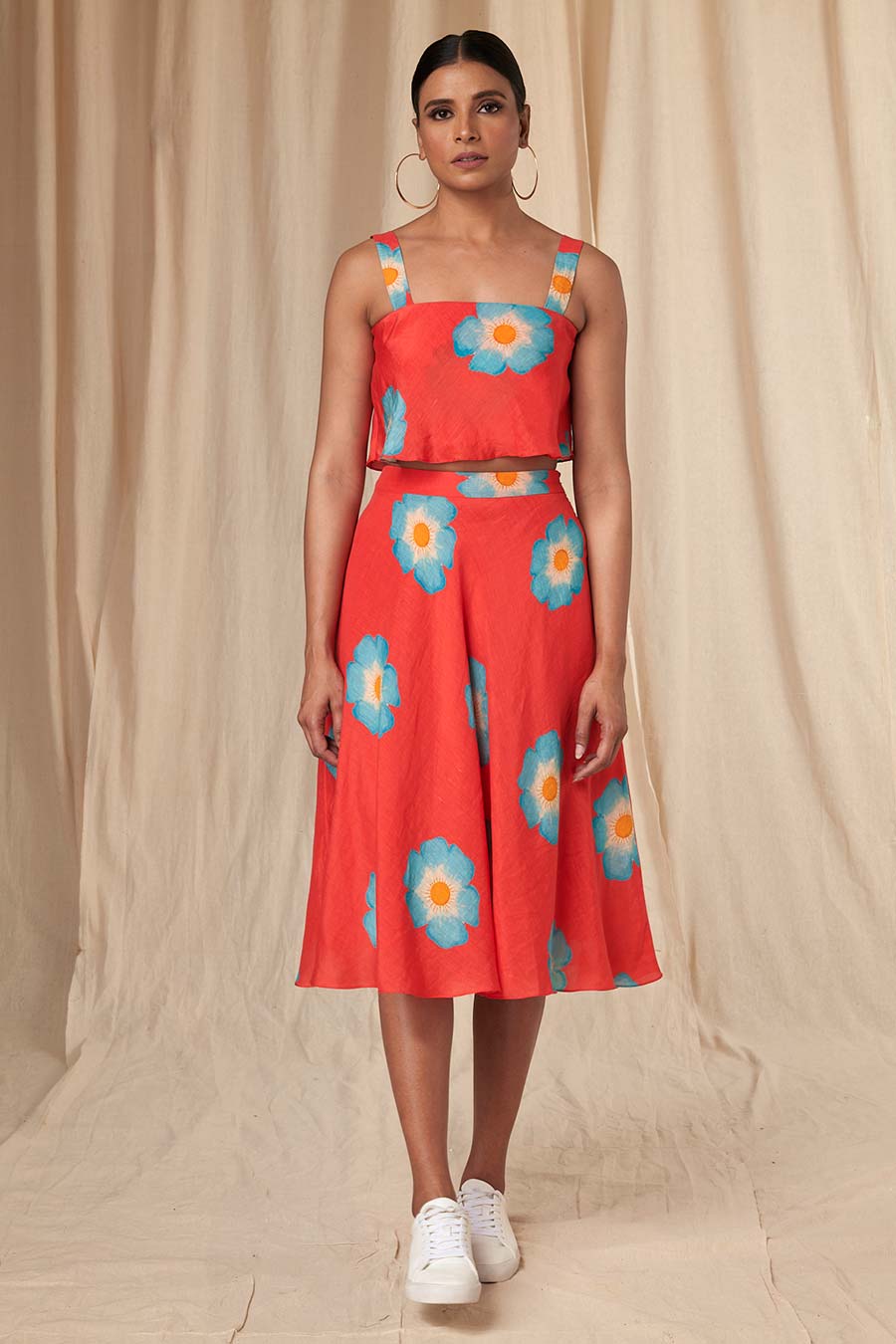Pink-Green Bloomerang Crop Top & Skirt Set