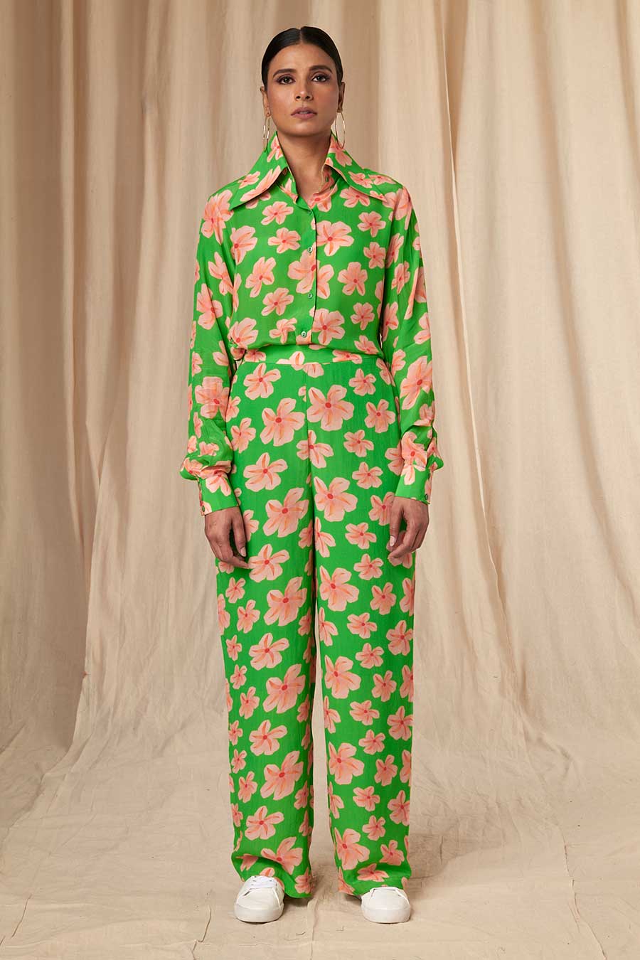 Green Flower Passion Shirt & Pant Co-Ord Set