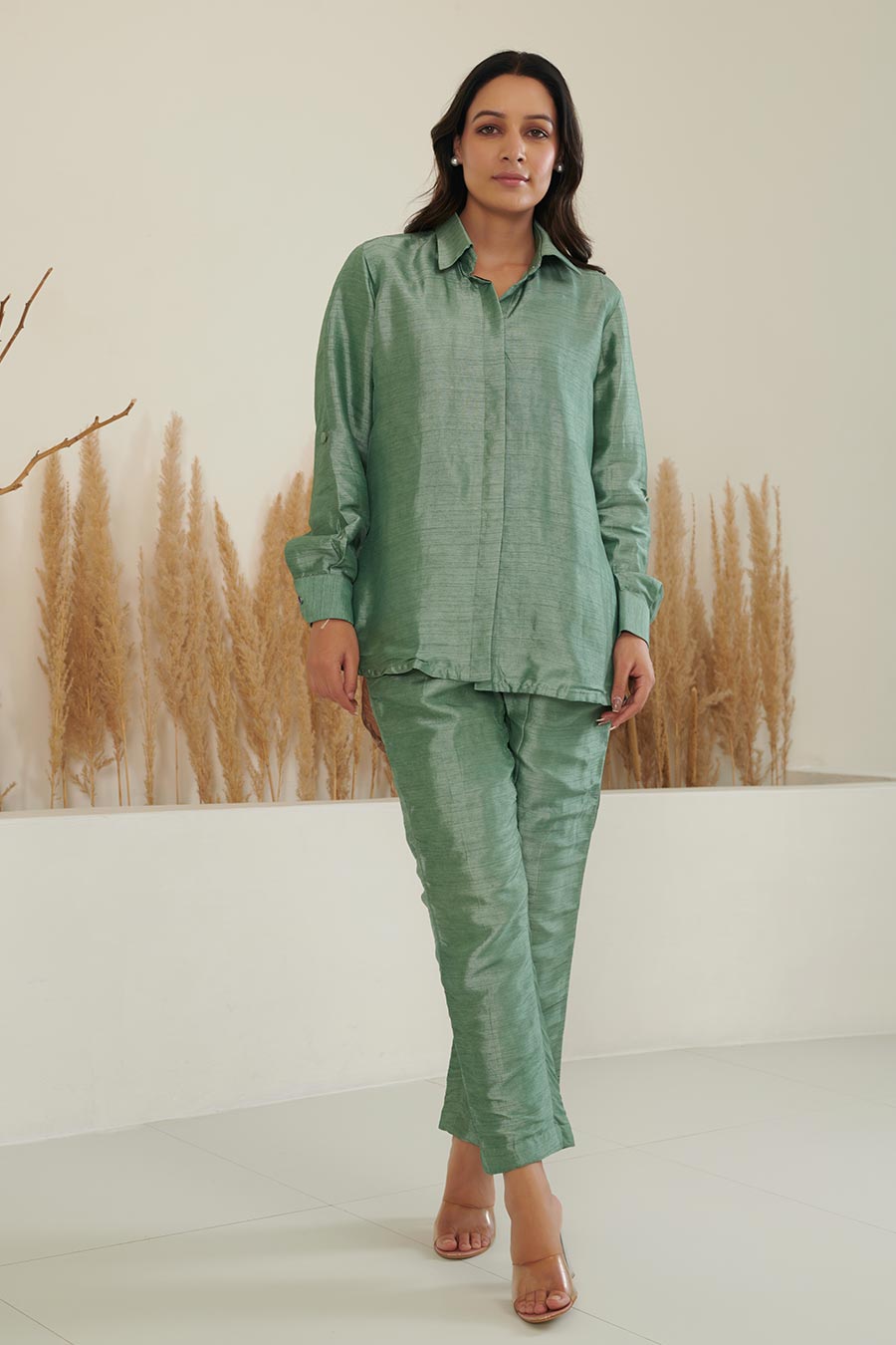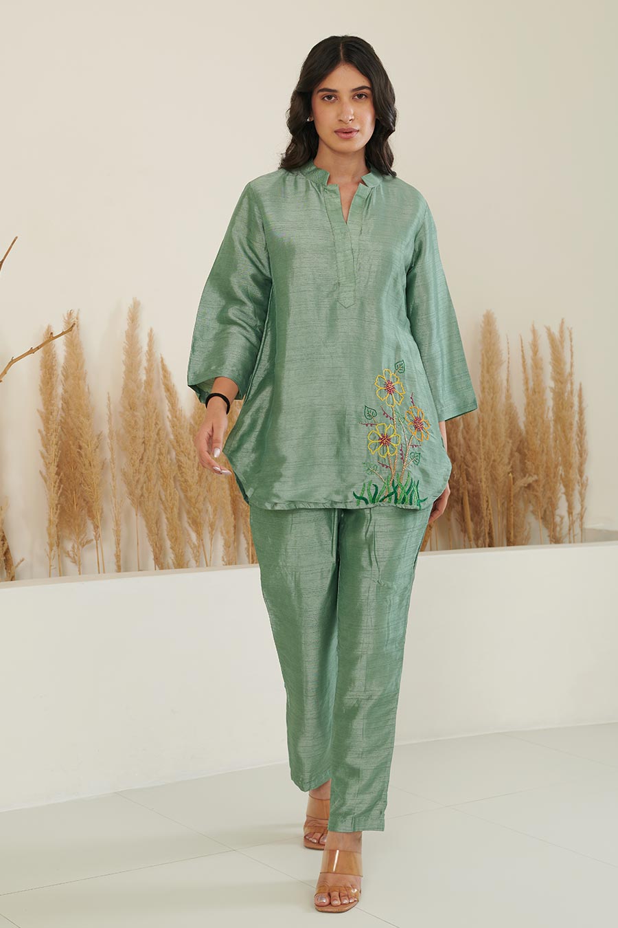ERa Sage Green Silk Embroidered Co-Ord Set