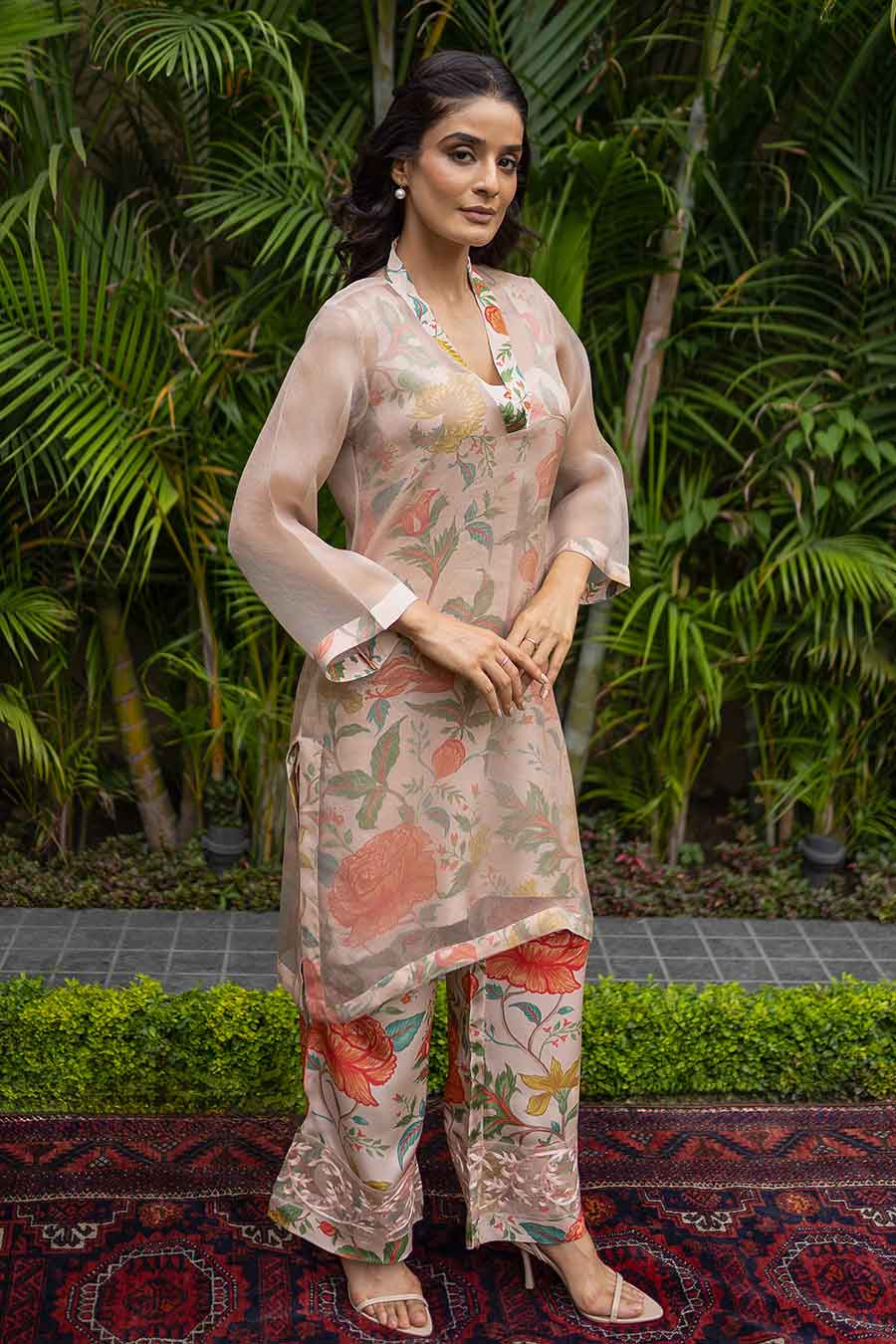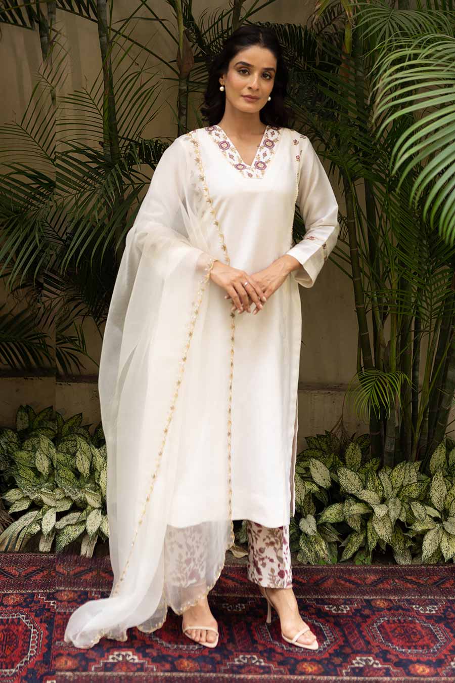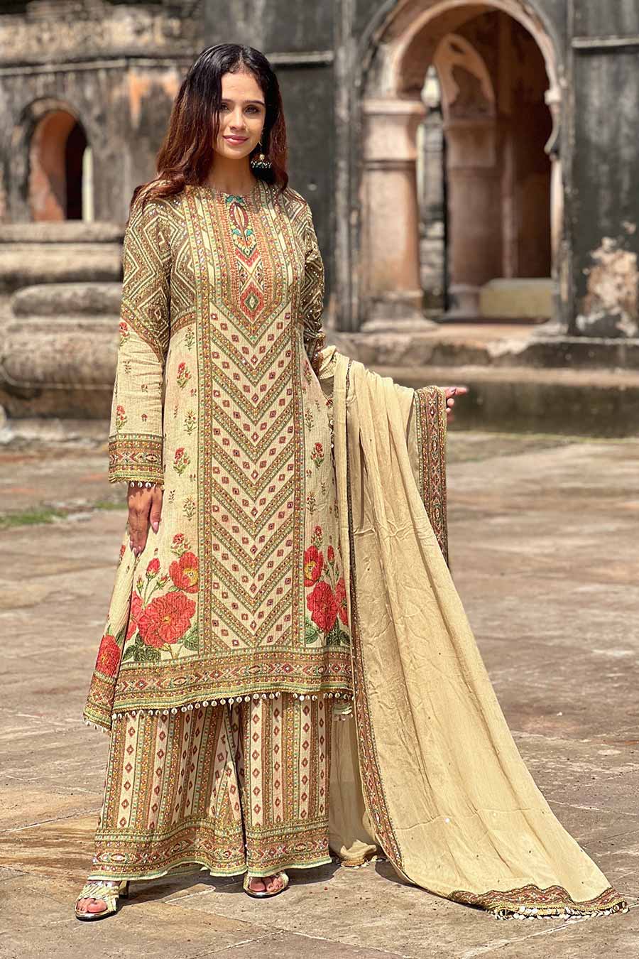 Ivory Palm Blooms Printed Kurta Set