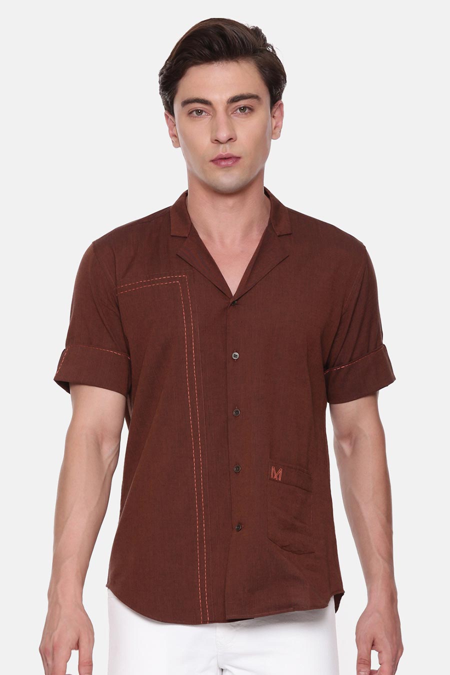 Brown Malai Cotton Hand-Stitch Half-Sleeves Shirt