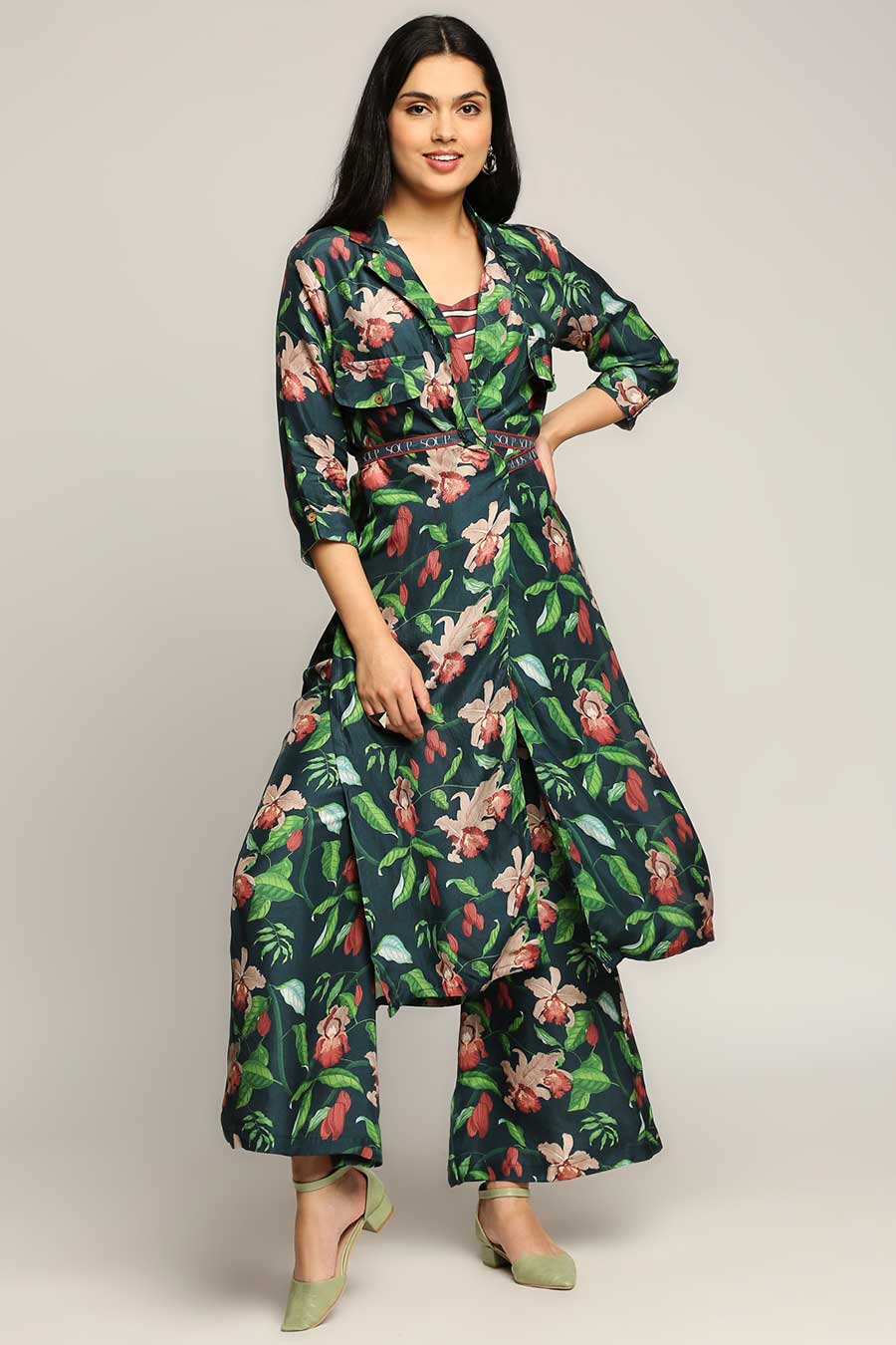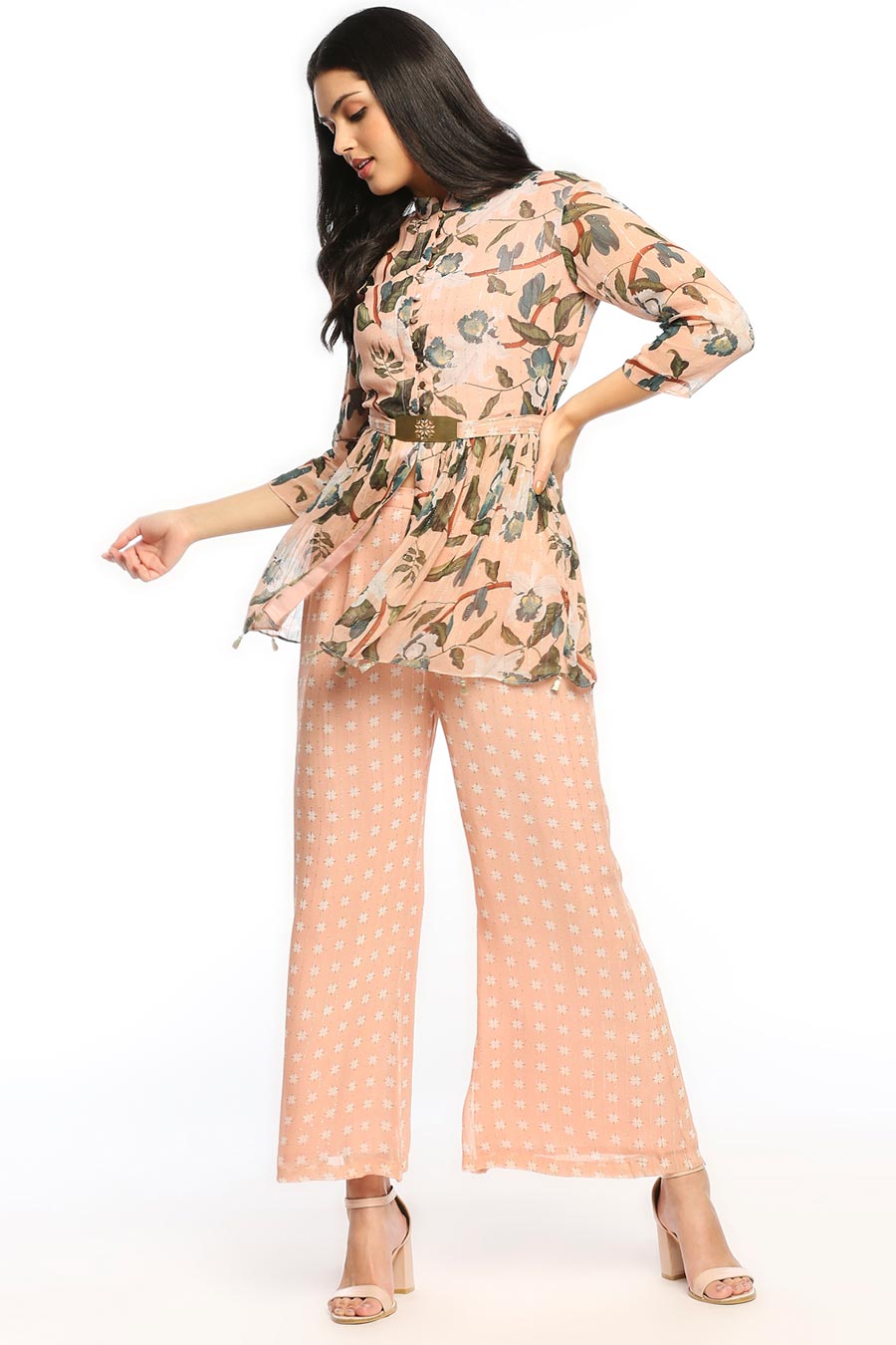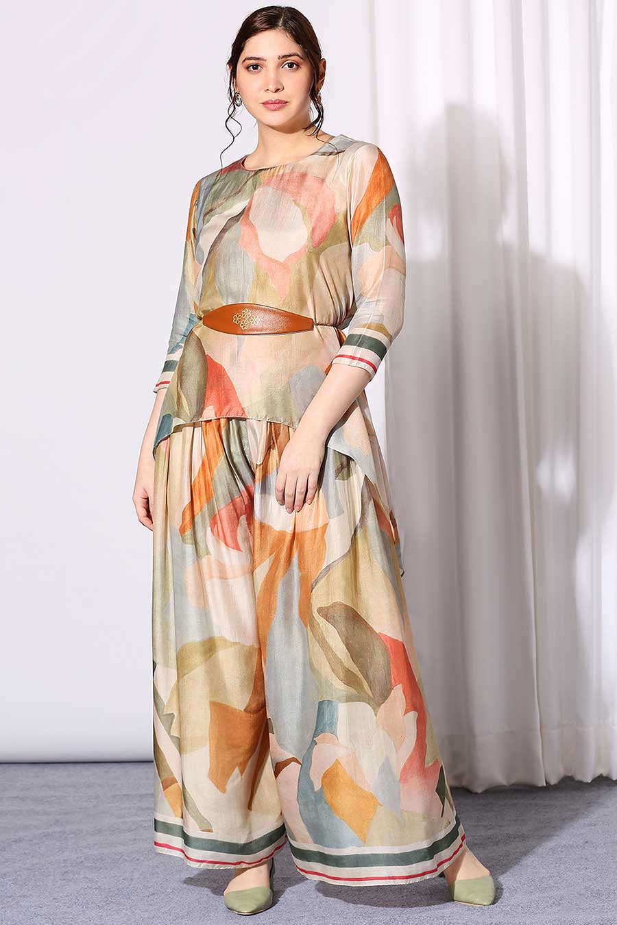 Printed Kaftan & Pant Co-Ord Set With Belt