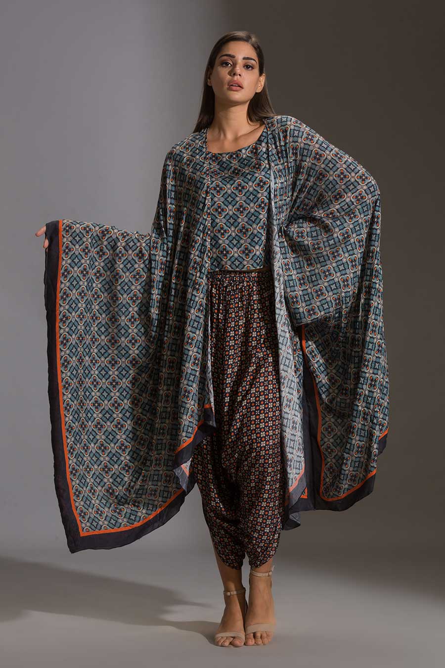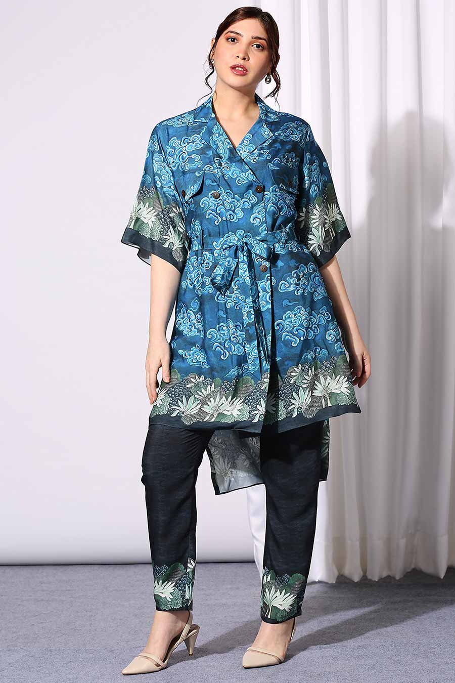 Blue Printed Kaftan & Palazzo Co-Ord Set