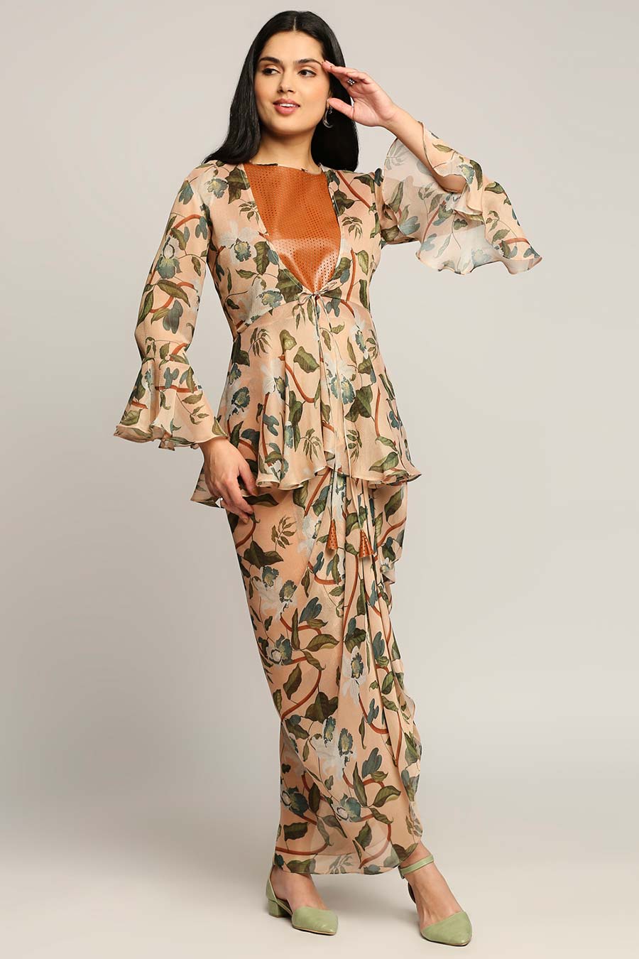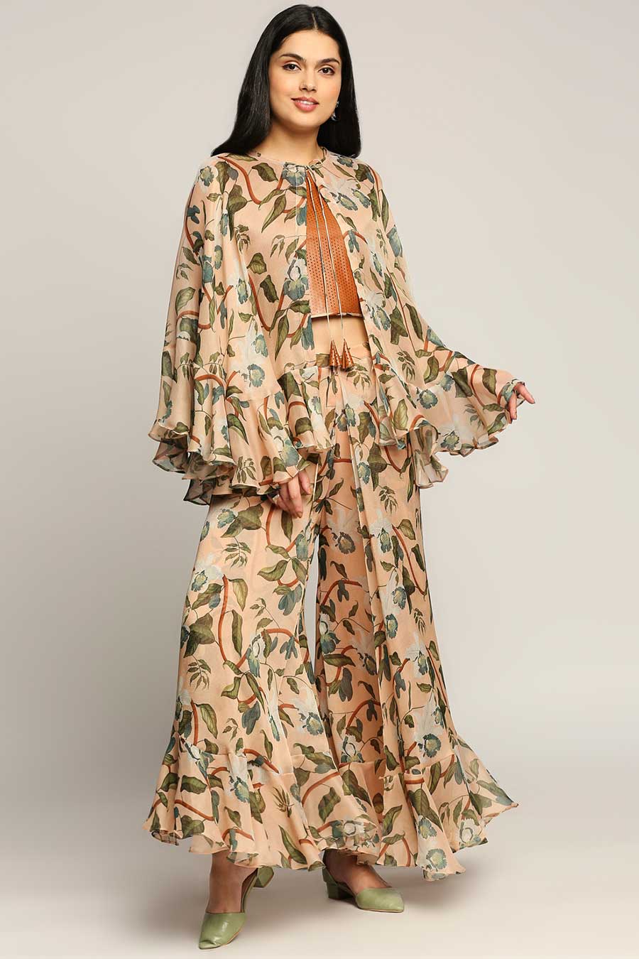 Orchid Bloom Ruffle Co-Ord Set With Cape