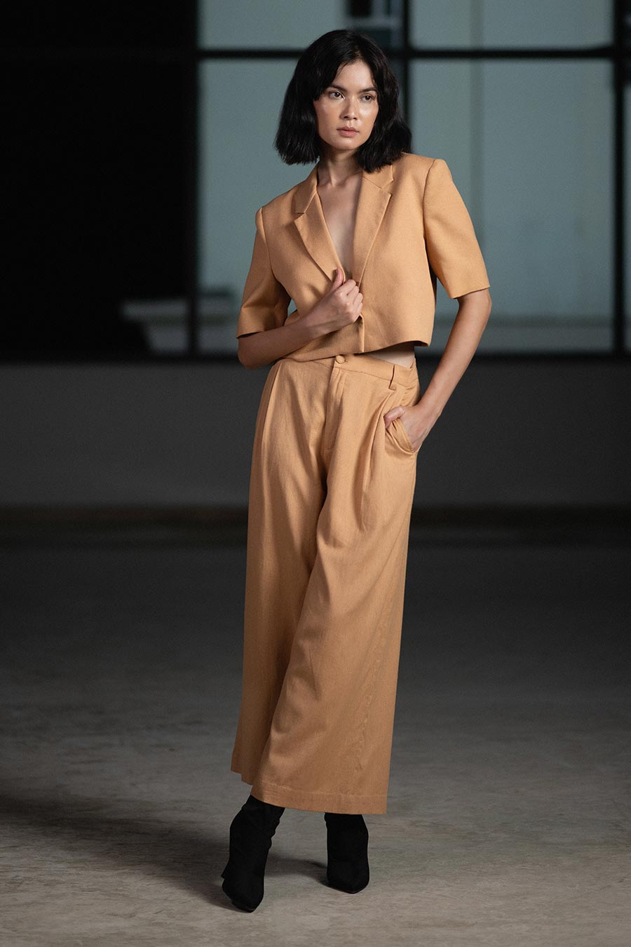 Brown Desert Dune Crop Blazer & Pant Set