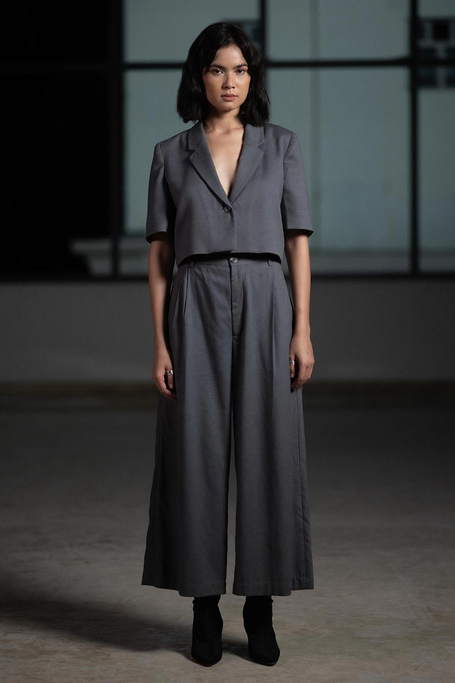 Grey Earthern Crop Blazer & Pant Set