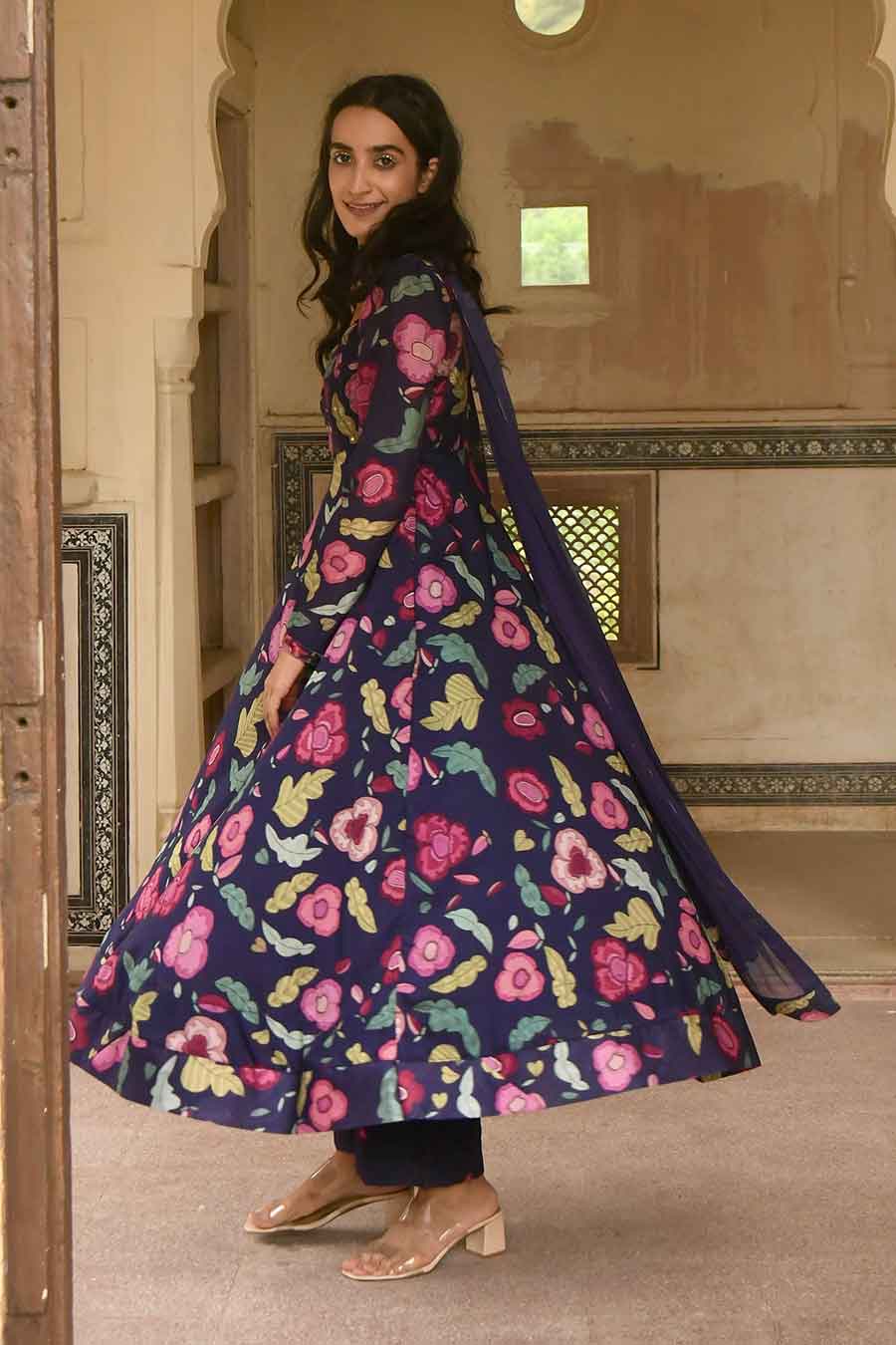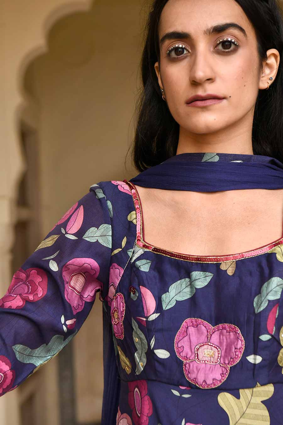- Kurta in Chanderi Silk with foilage print with side zip closure