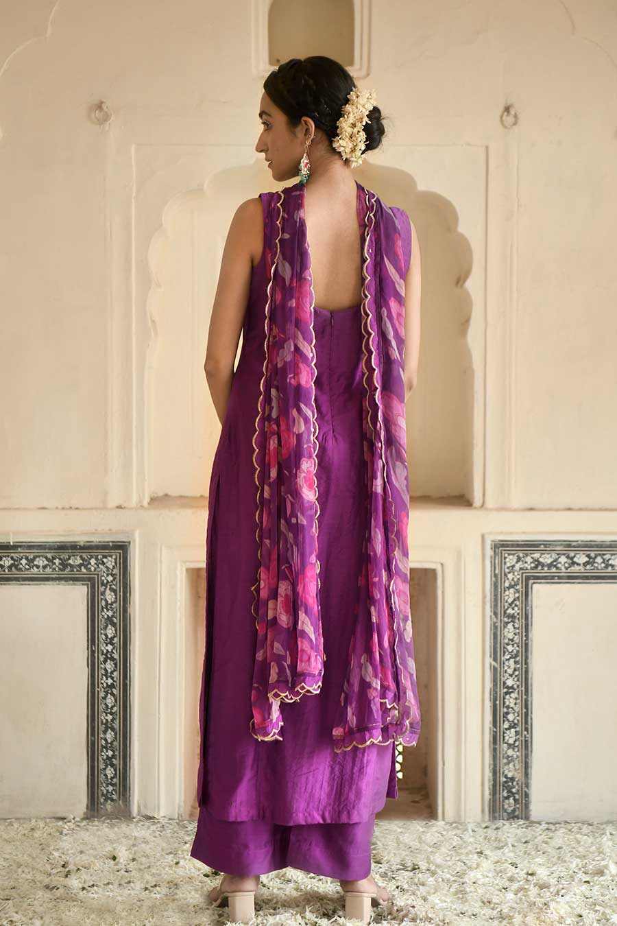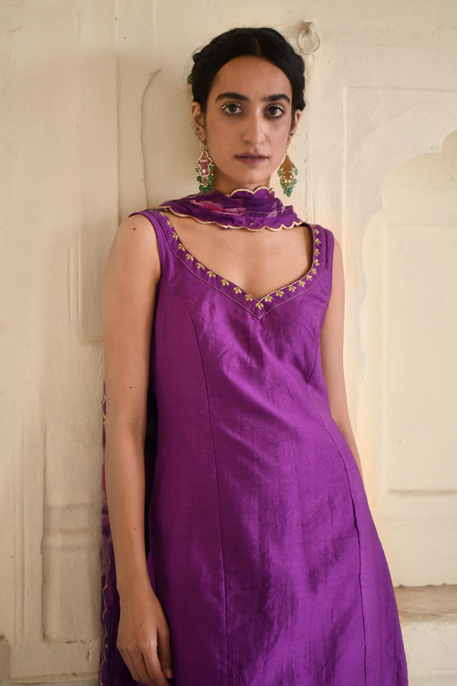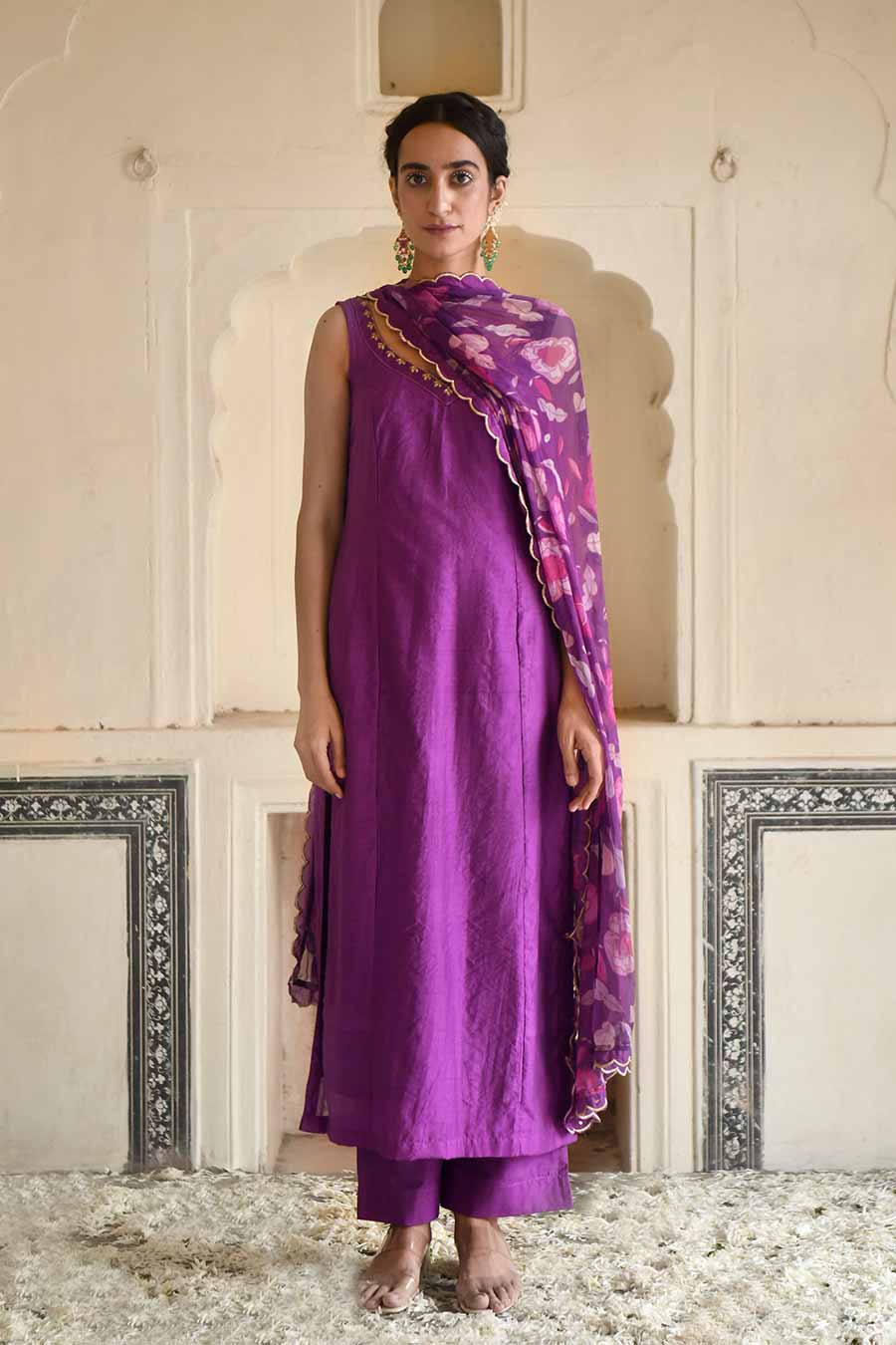 Violet Chanderi Embroidered Kurta Set
