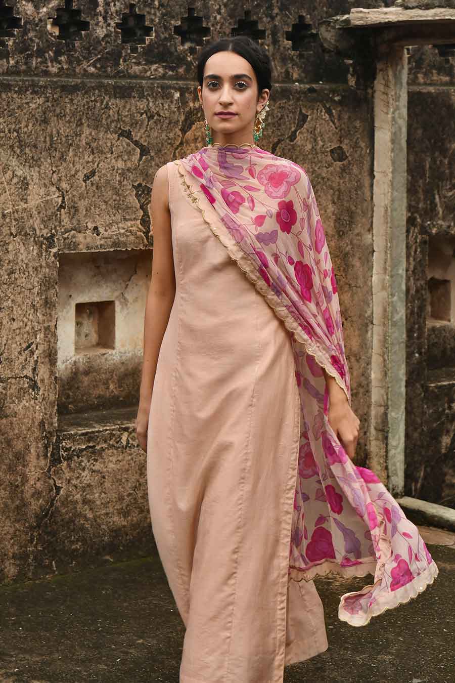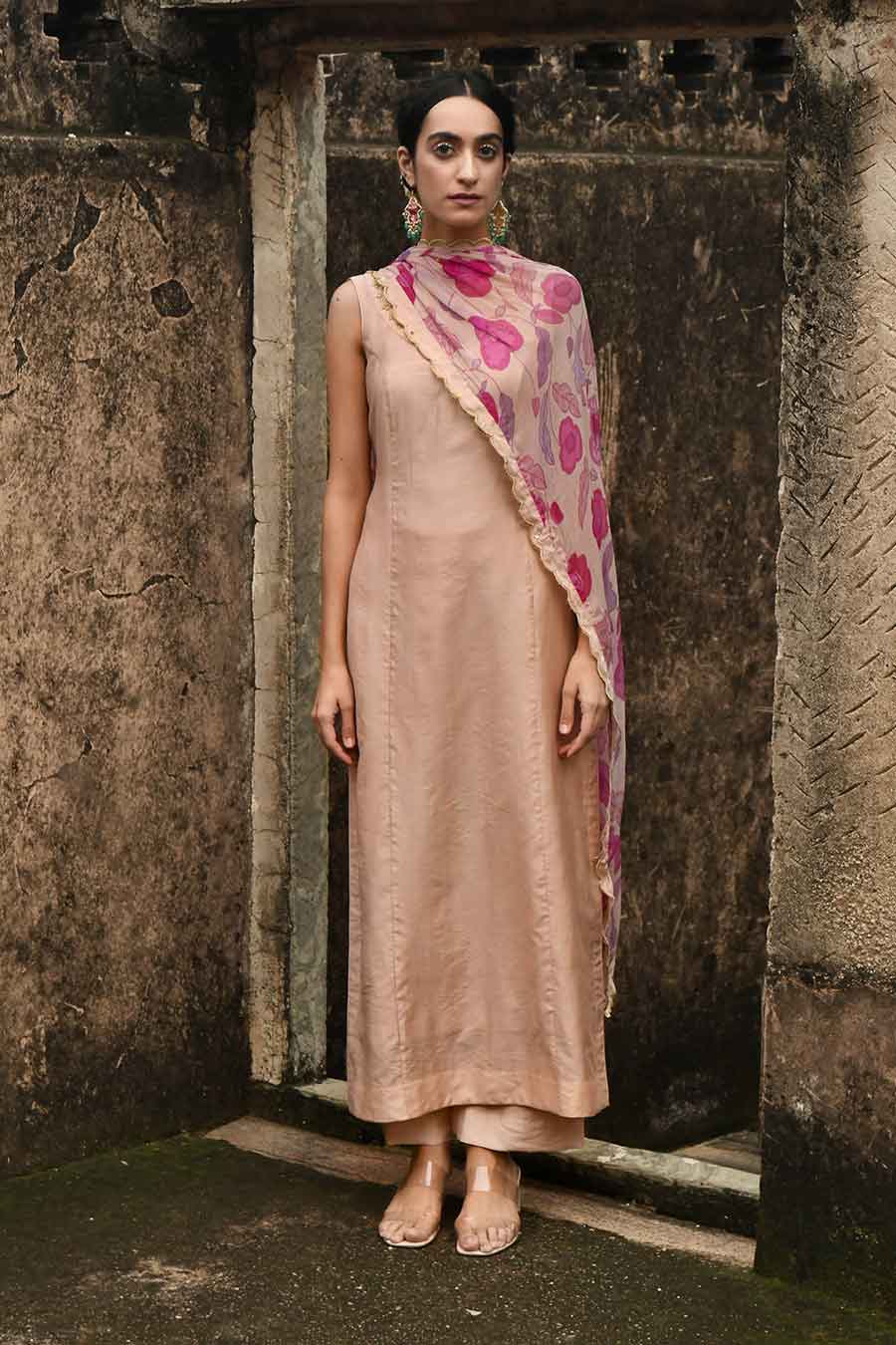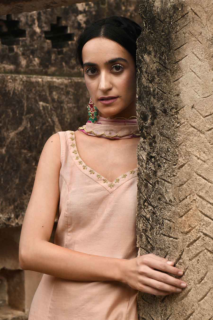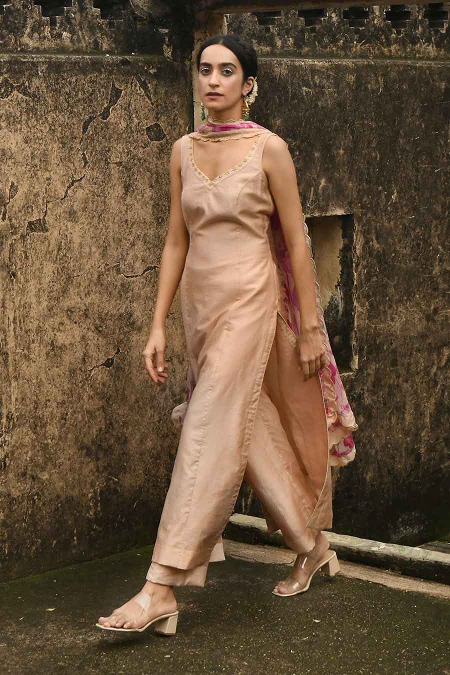 - Sleeveless kurta in Chanderi Silk with back zip closure
