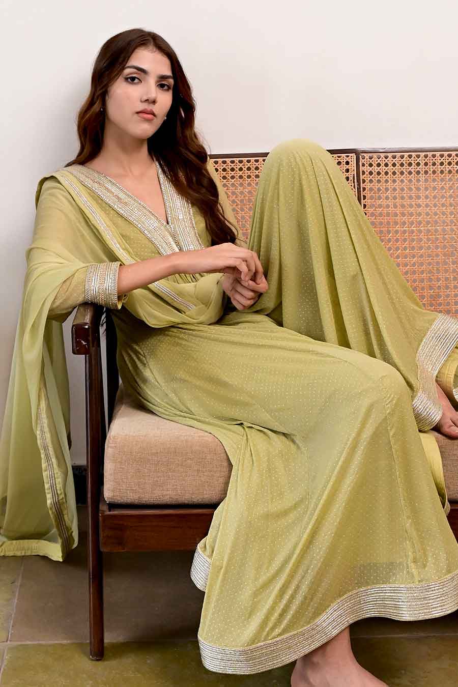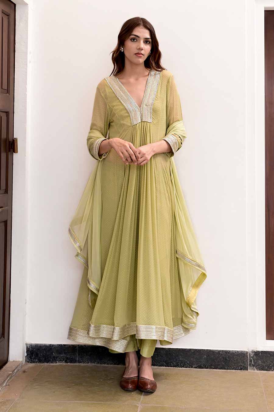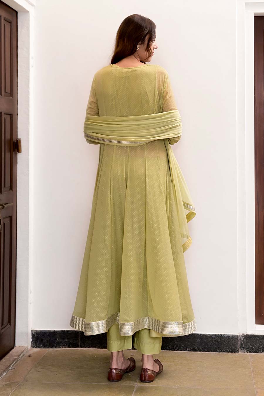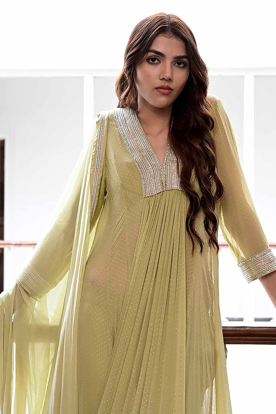 - Material - Kurta and Dupatta - Chiffon Dew Drop; Pant - Chanderi Silk