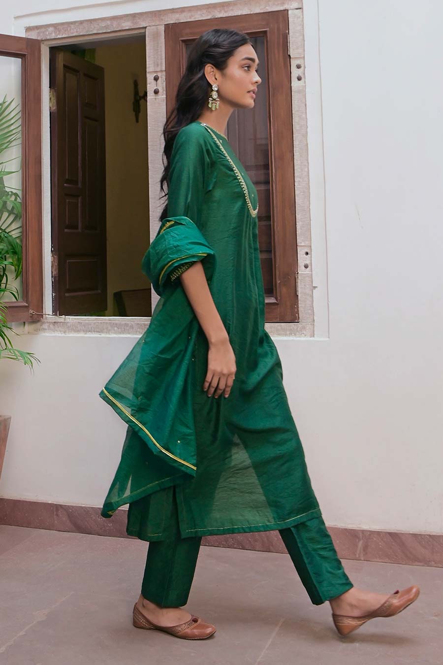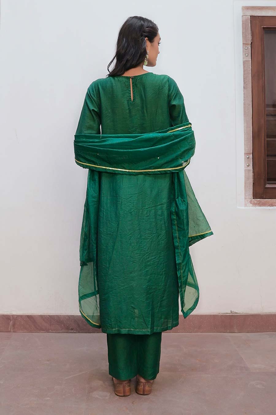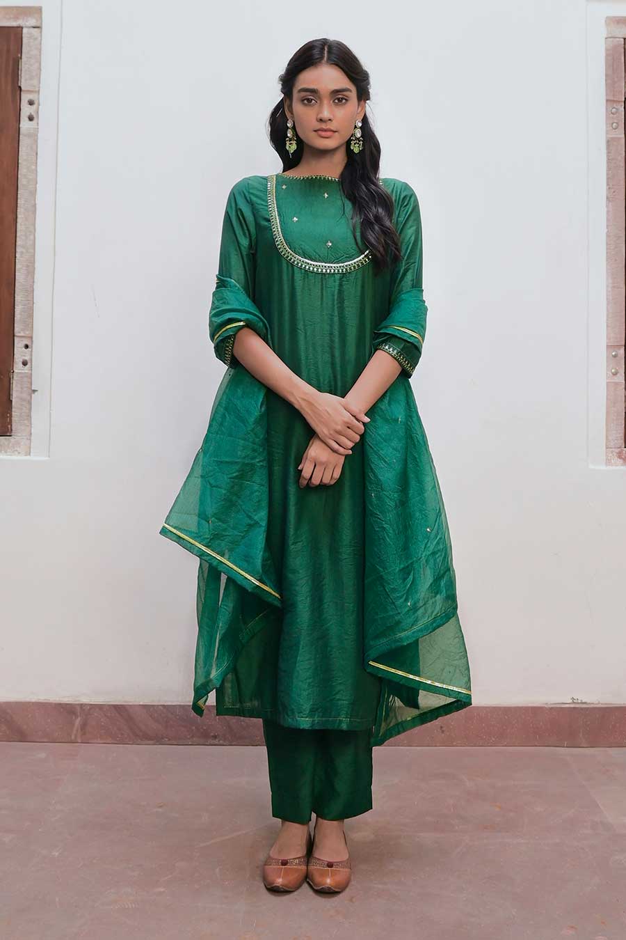- Enhanced with zari sequins embroidered U-shape butti yoke