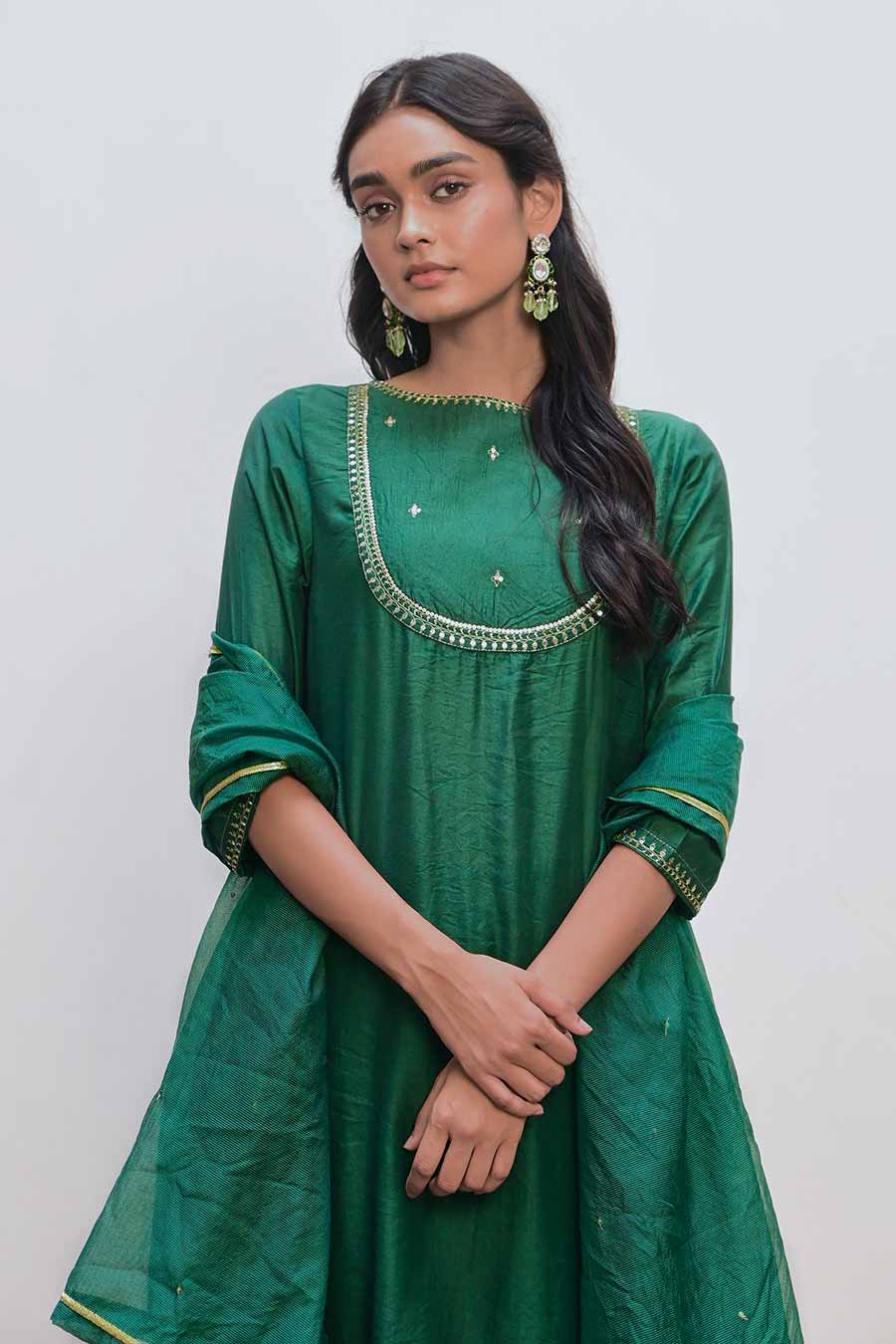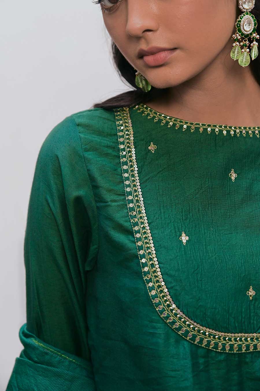 - Embellished with cutdana zari and sequins embroidery at the neck, front and sleeves