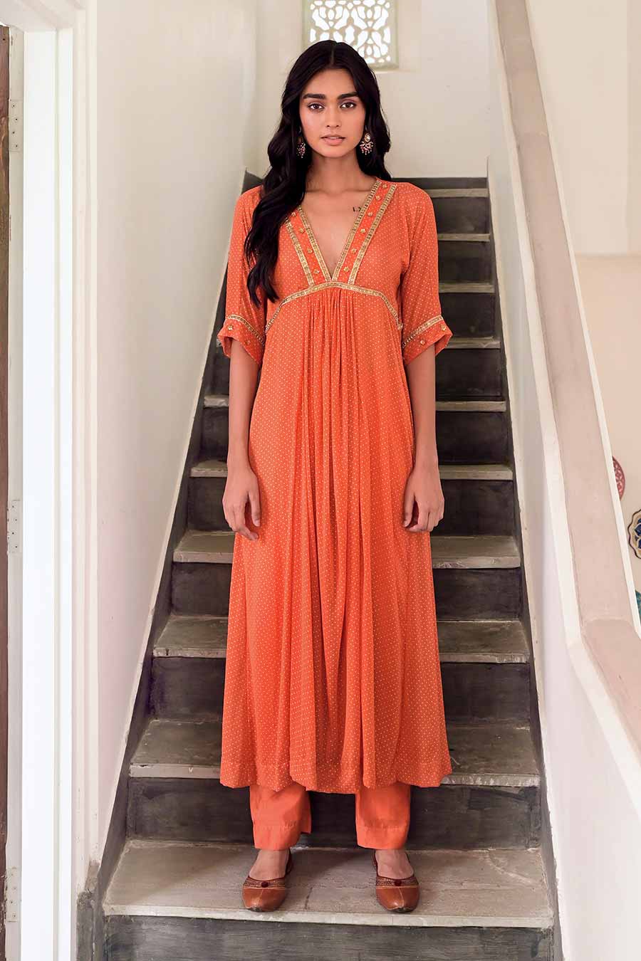 - Material - Kurta - Chiffon Dew Drop; Pant - Chanderi Silk