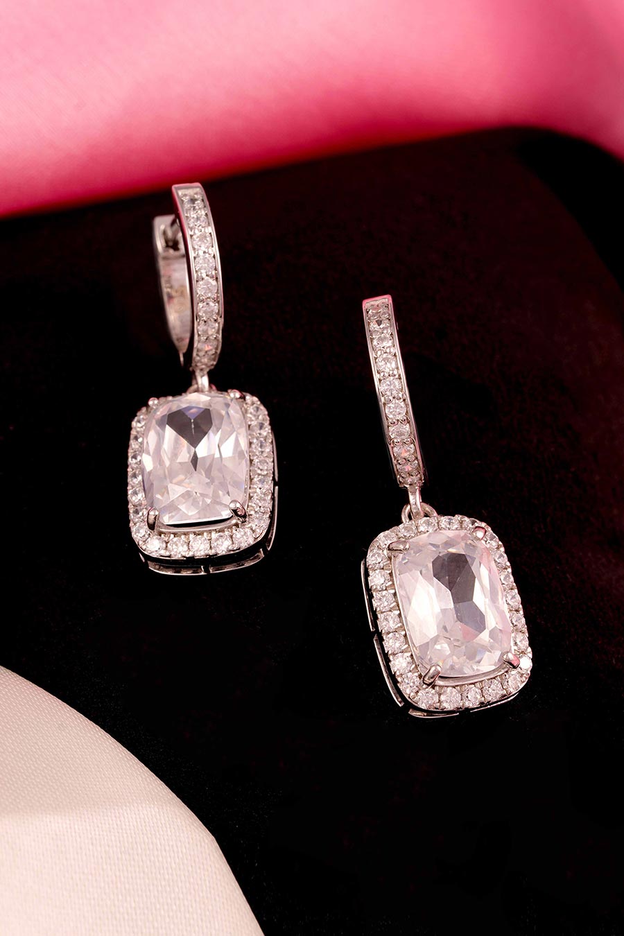 • Cushion-cut stone swaying at the bottom