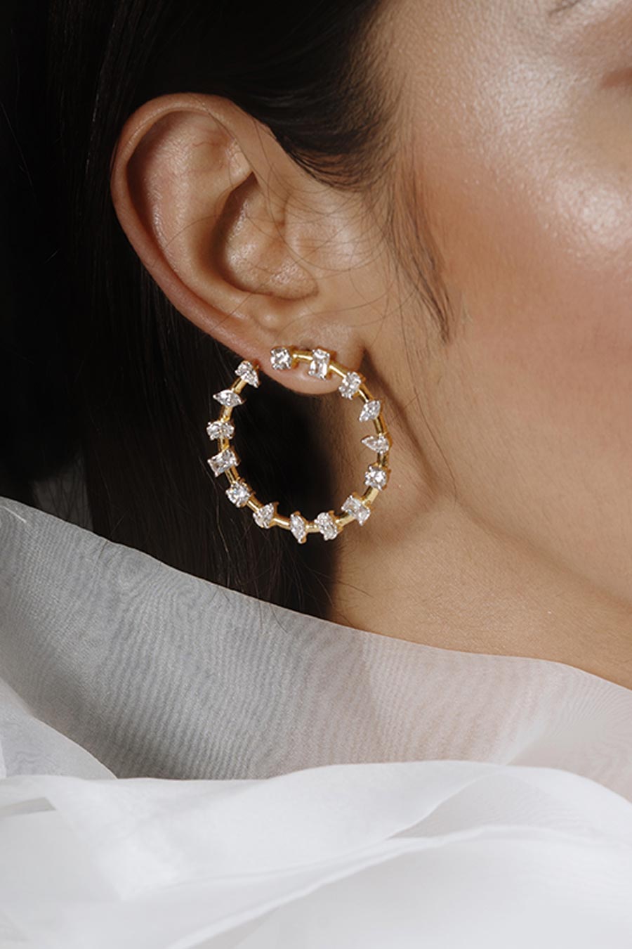 92.5 Sterling Silver Golden Estro Studs Earrings