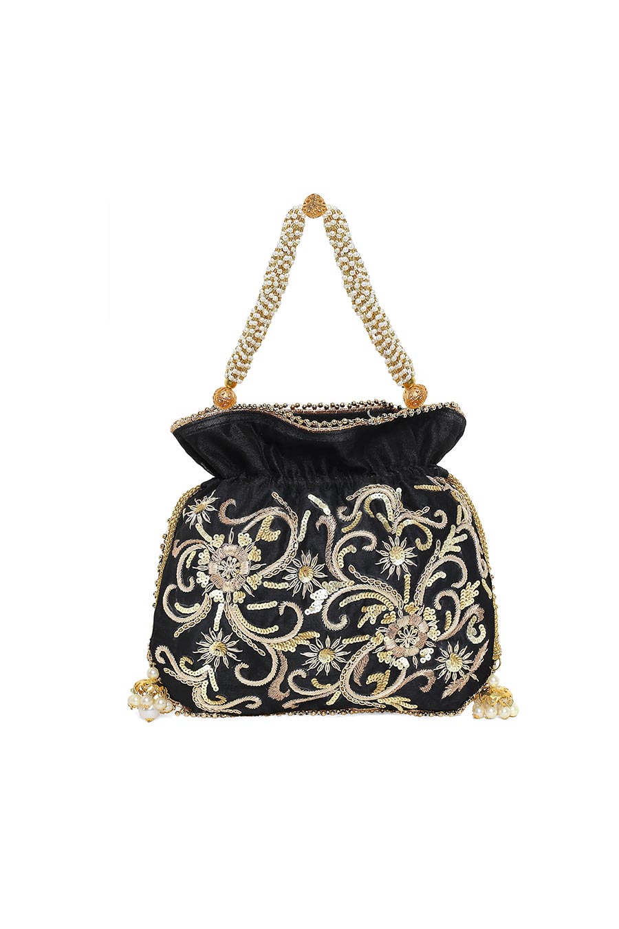 Black Elegant Hand-Embroidered Potli